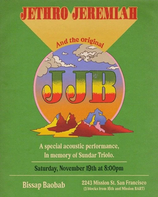 Jethro Jeremiah and the surviving 3 members of his original band, formed in Haight Ashbury over 20 years ago, will perform at Bissap Baobab on Saturday evening November 19.